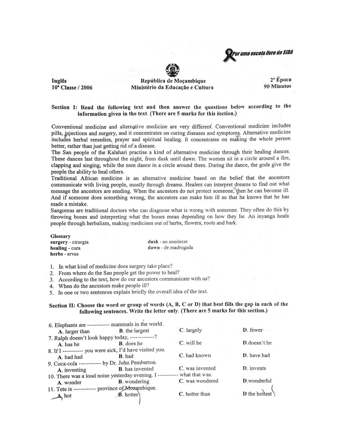 Inglês 2006 – 2ª Chamada da 10ª classe (Enunciado do Exame em PDF)