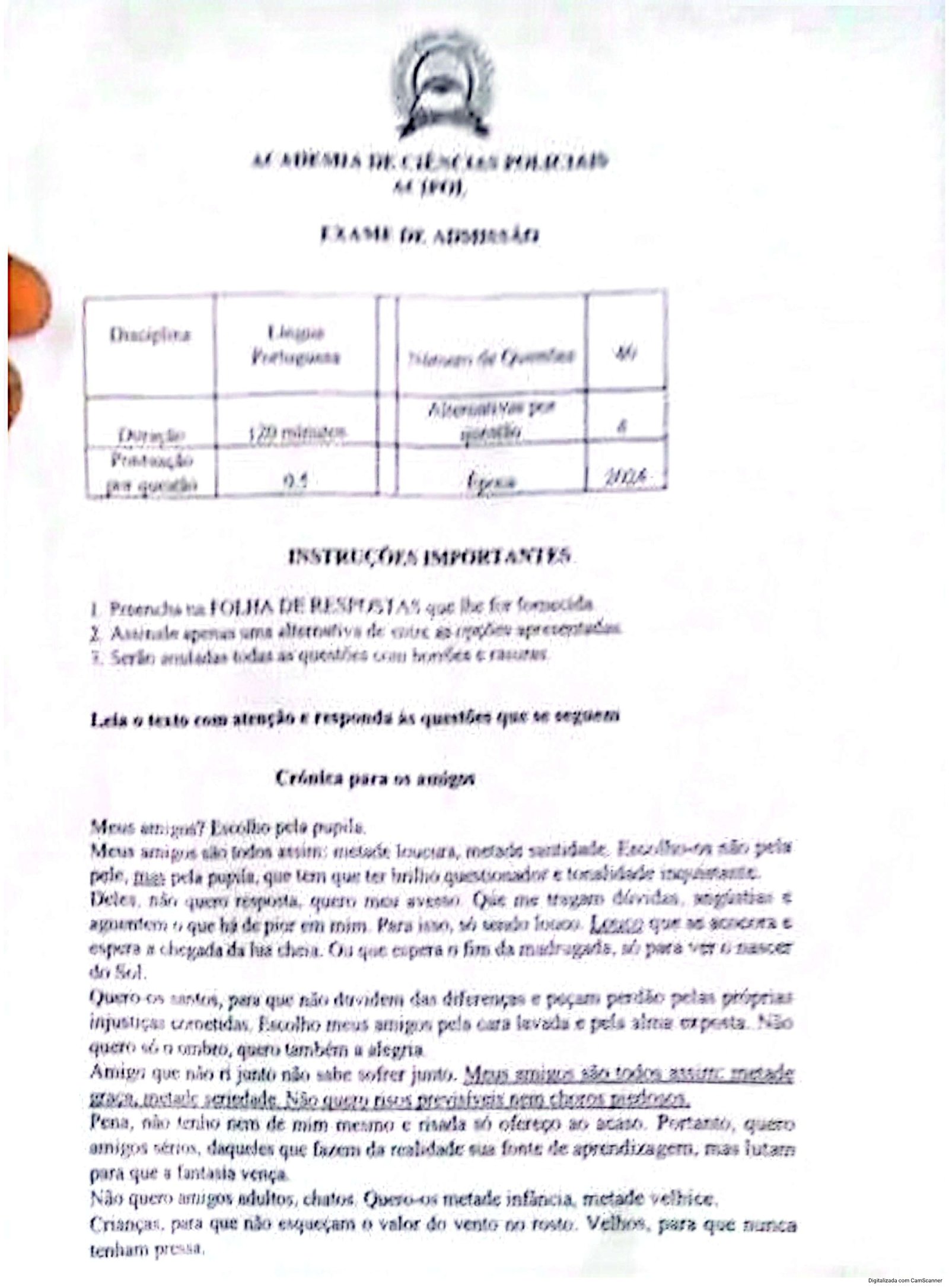 Português – 2024 da ACIPOL (Enunciado do Exame de Admissão em PDF)