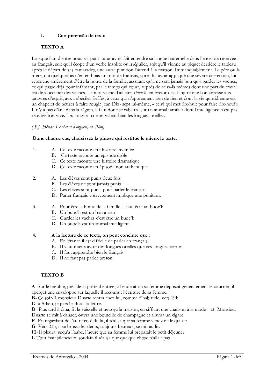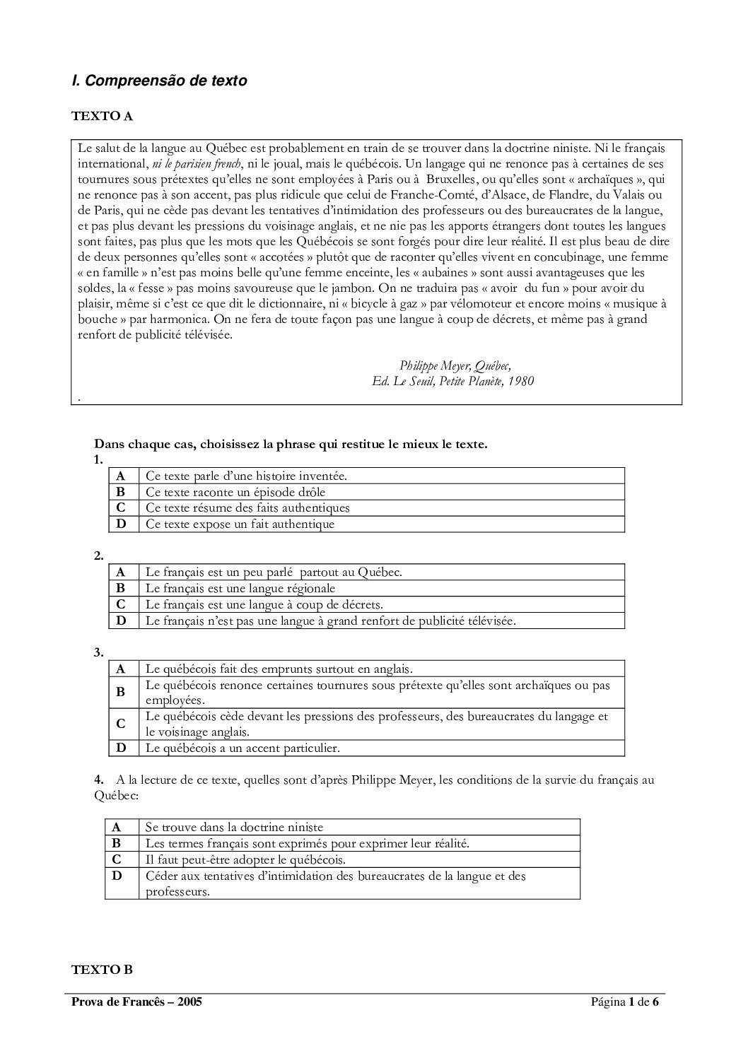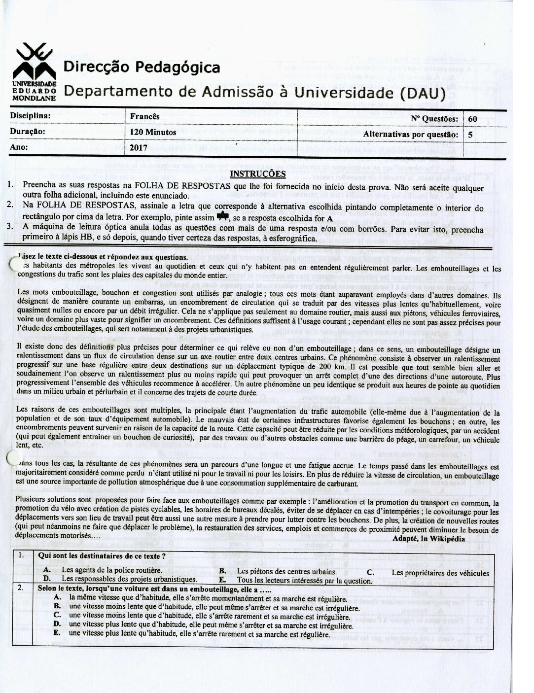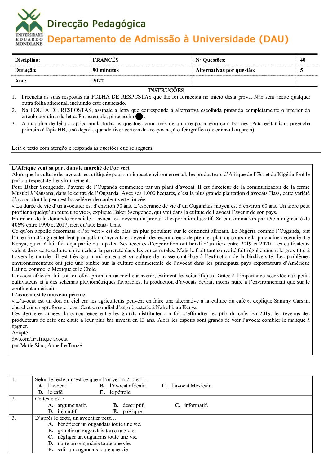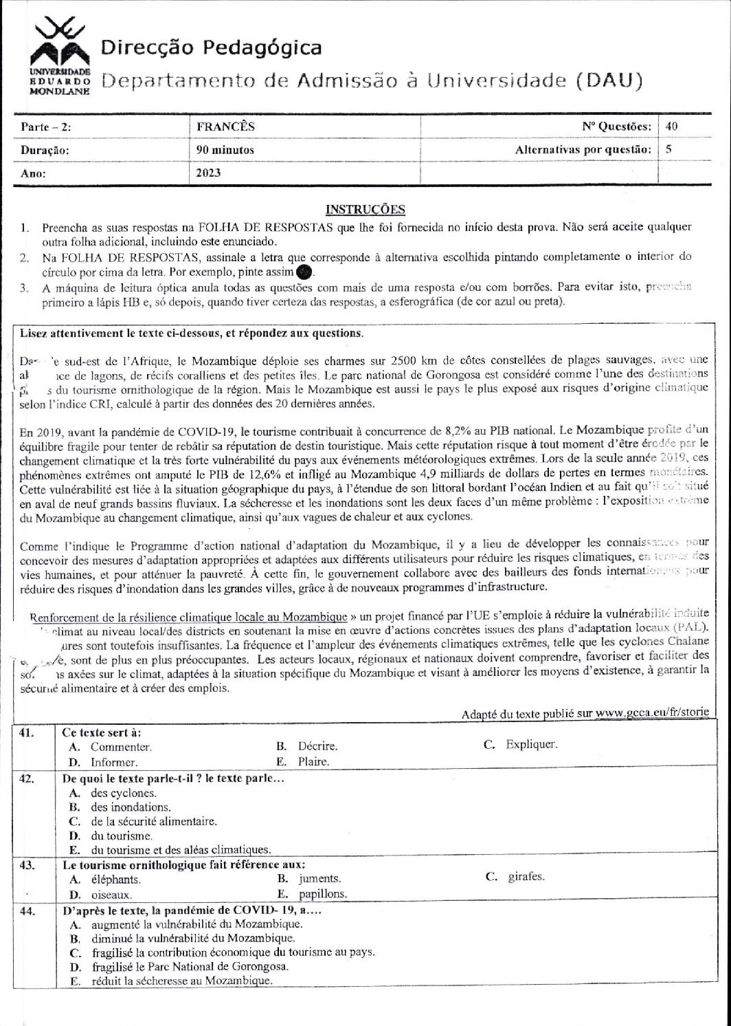 Francês – 2014 da UEM (Enunciado do Exame Em PDF) - Baixar este documento em PDF para uso no seu ambiente académico...
