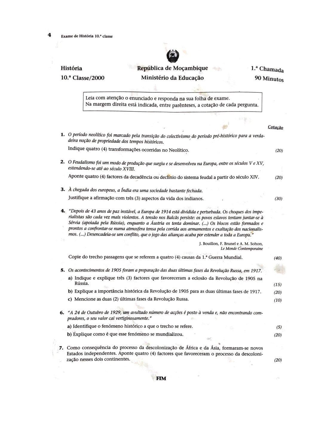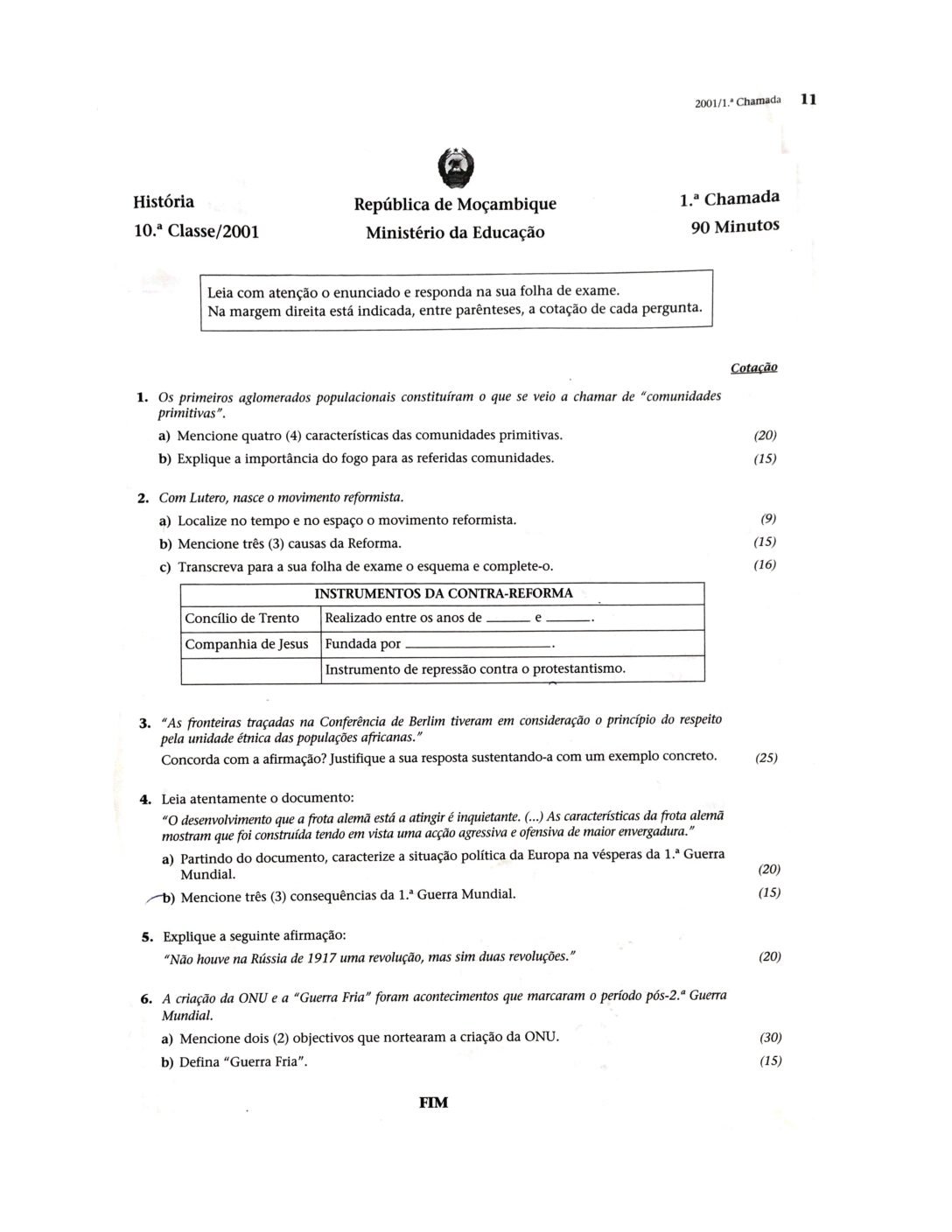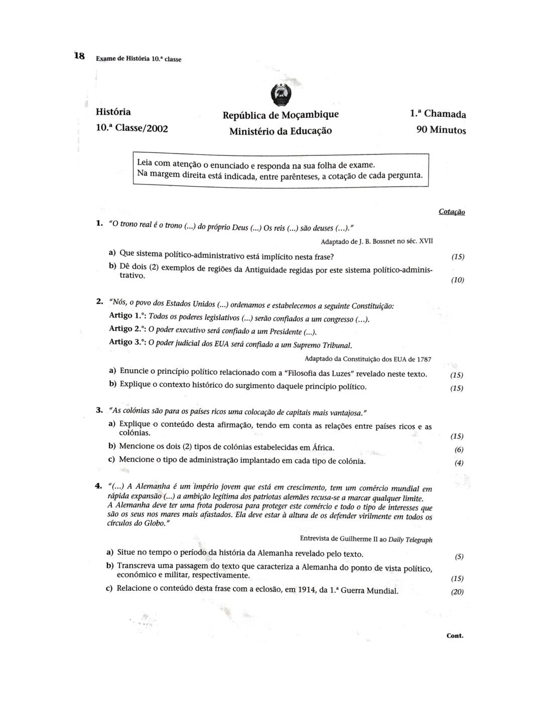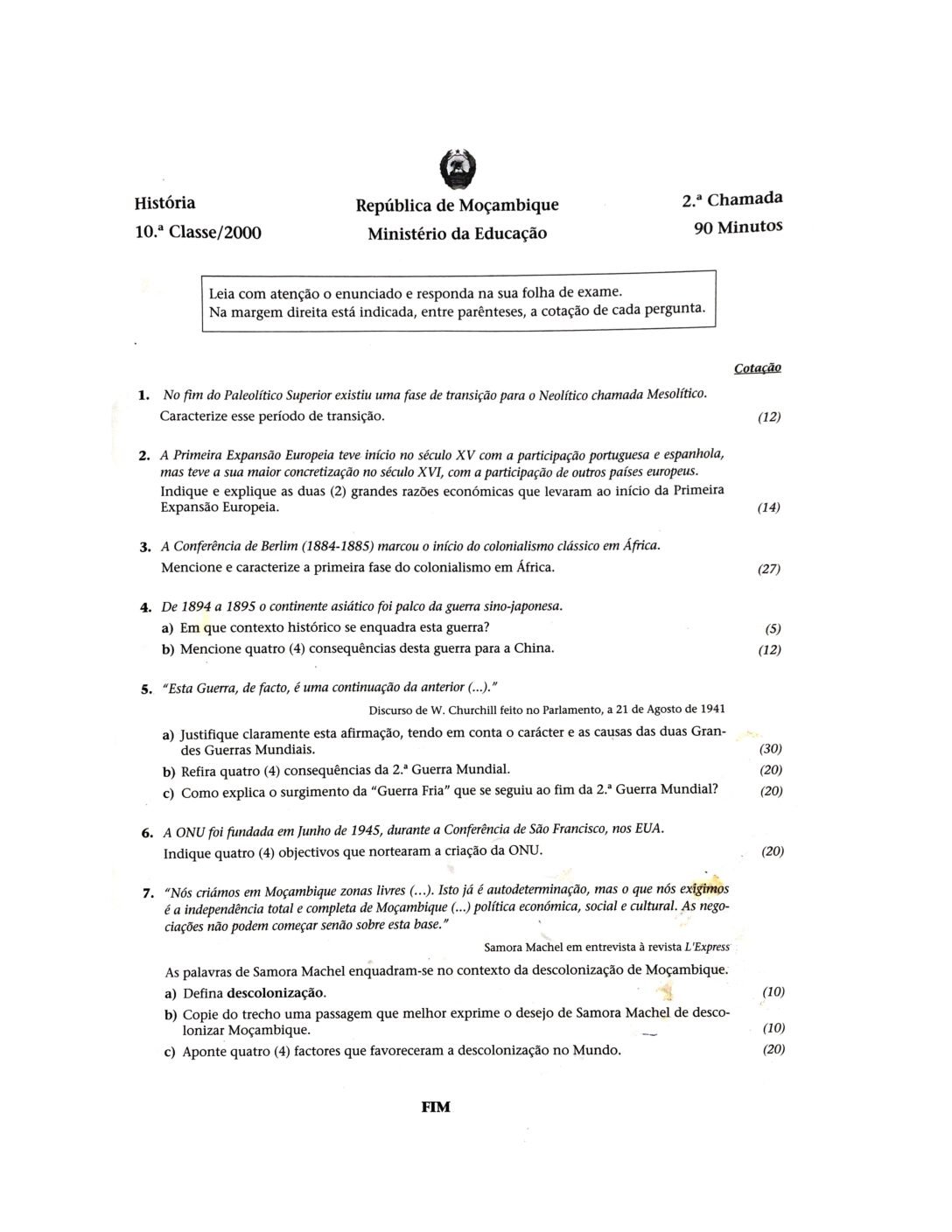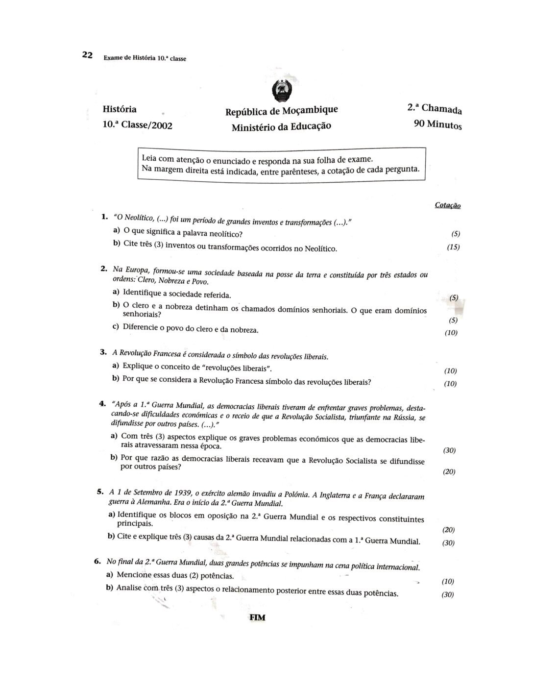História 2003 – 2ª Chamada da 10ª classe (Enunciado do Exame em PDF)